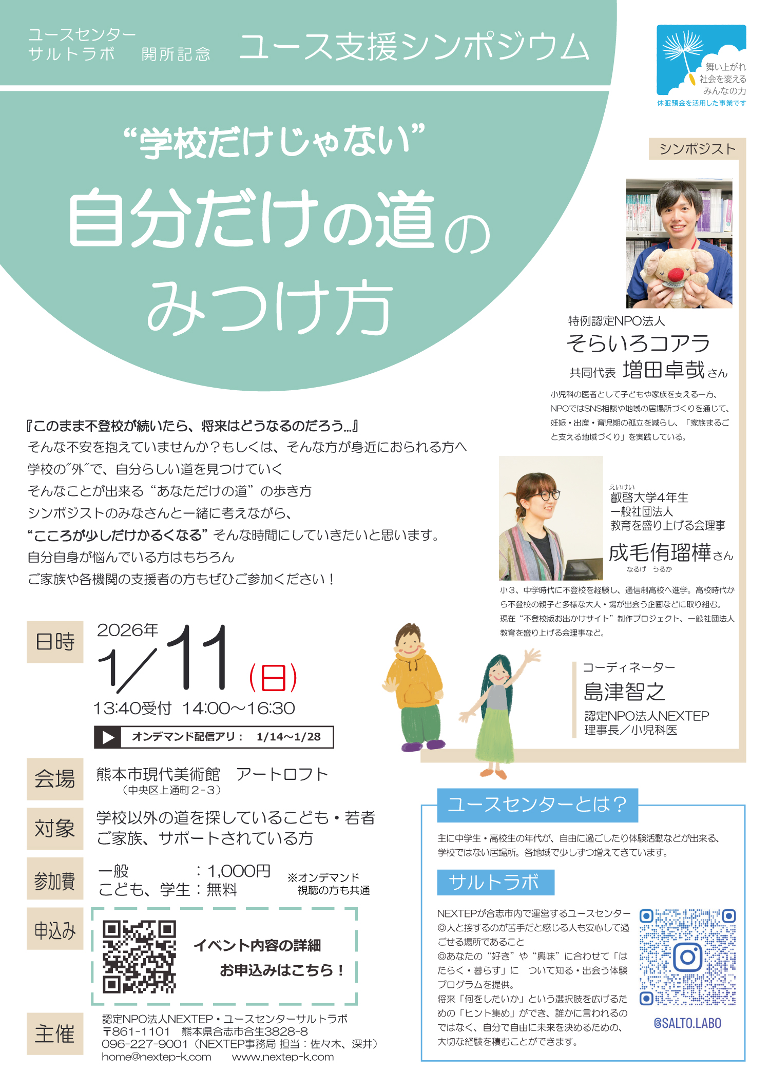 『学校だけじゃない!自分だけの道のみつけ方』をテーマにシンポジウムを開催いたします!