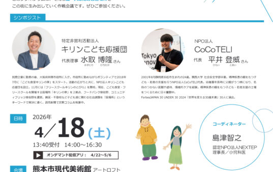 この度、認定NPO法人NEXTEPでは「小児慢性特定疾患相談会」を開催いたします。対象は、小児慢性特定疾患の方とそのご家族です。日常生活や学校生活を送るうえでのお困り事や将来への心配ご…